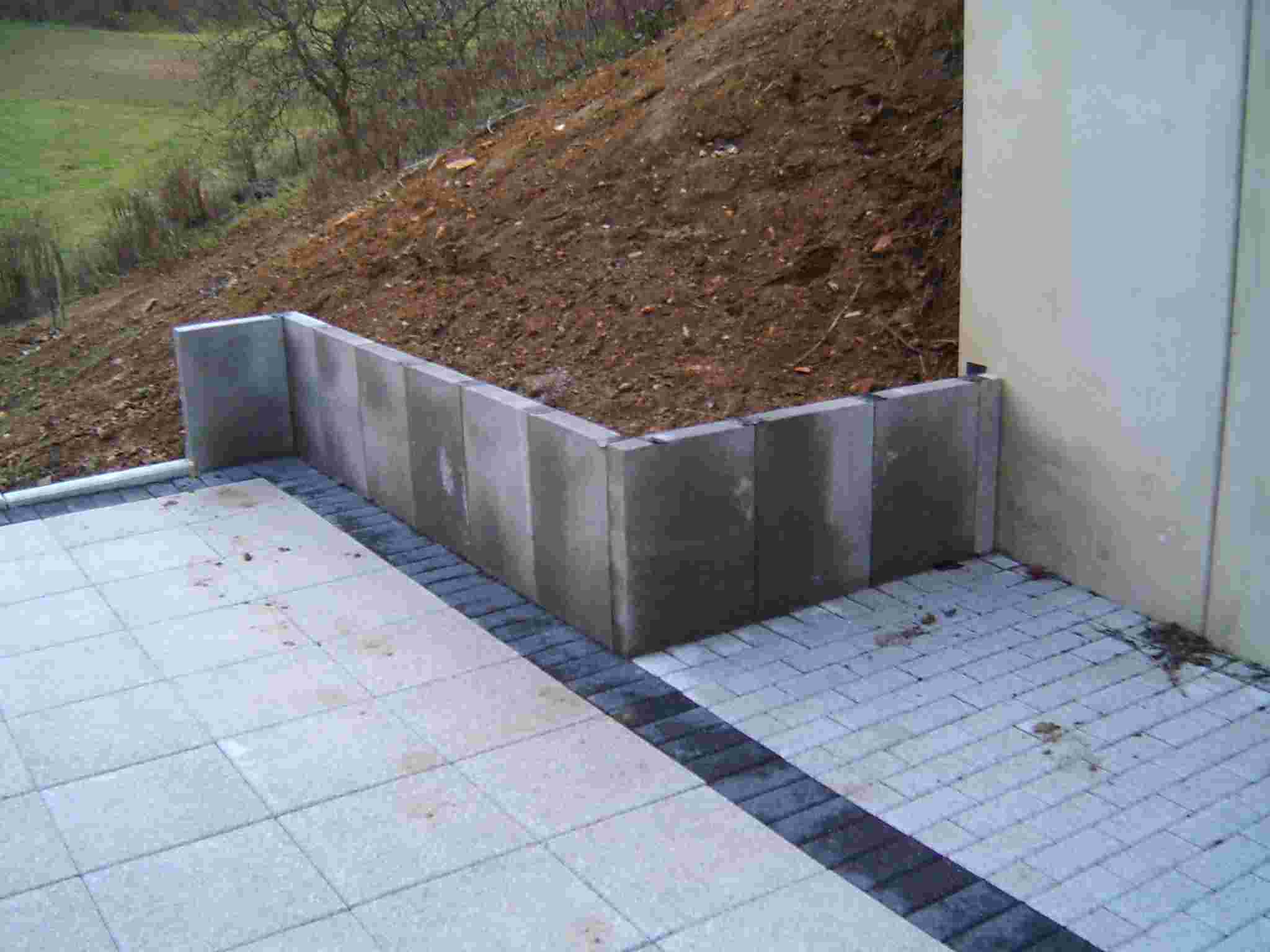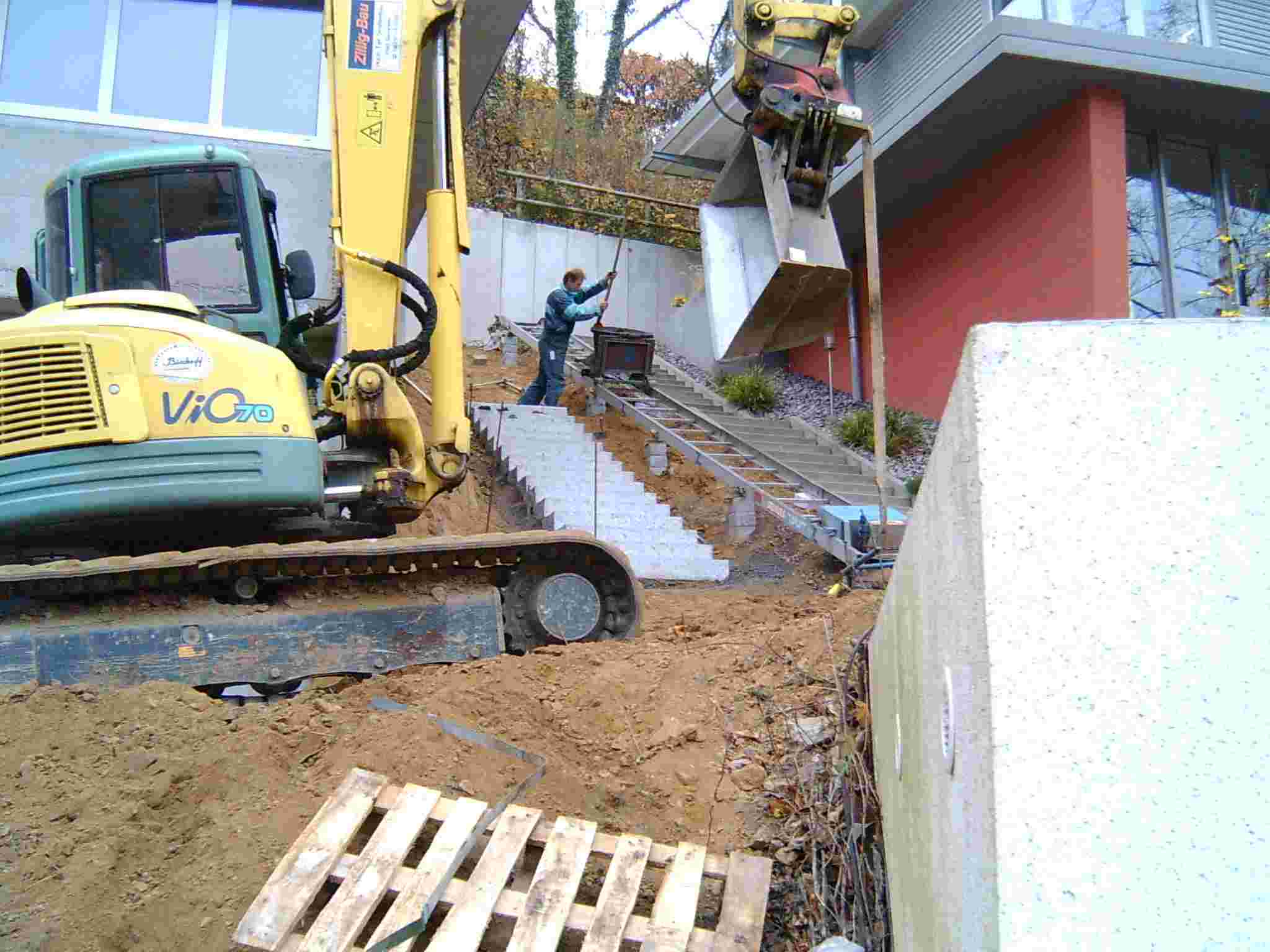 Außenanlagen Wir arbeiteten September 2003 bis März 2004 mit ablaufbedingten Unterbrechungen an diesem Projekt in Bensheim-Hochstädten in Hanglage Die Bauleitung für dieses Objekt hatte das Ingenieurbüro Blumenschein in Bensheim, welches uns einen Teil der folgenden Bilder freundlicherweise zur Verfügung gestellt hat. Zum Vergrößern die Bilder anklicken