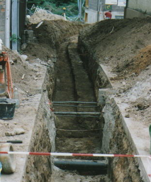 Hausanschluß für ein Reihenhaus in Lorsch, Fertigstellung in1998 Hier wurden die Leitungen für Kanal, Wasser, Gas, Strom und Telefon verlegt. Die Koordination mit den Versorgungsträgern übernehmen wir ab der Auftragsvergabe d.h. auch das Abklären der Anschlußlagen im Planungsstadium mit den Versorgungsträgern |