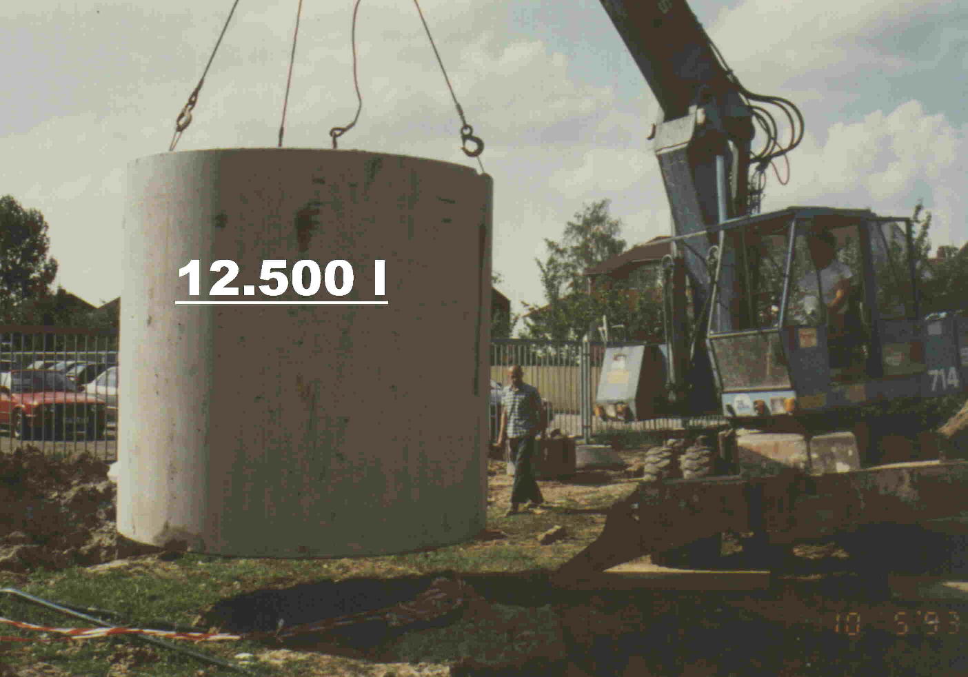 Wir liefern die Zisternen, leisten die Erdarbeiten und versetzen die Zisterne incl. der erforderlichen Anschlüsse. Die gezeigte Zisterne wurde beim Anbau des Feuerwehrgerätehauses in Zwingenberg versetzt und hat ein Gewicht von 6,5 T.